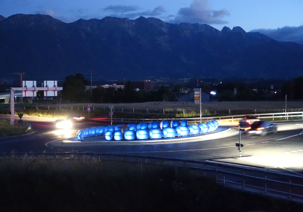 For the effective circular lighting in the Thun bypass, the design office Gerhard Gerber Gestaltung, Bern, chose a spotlight from Tamlux. As soon as it gets dark, PARKANO transforms the blue plastic cubes into an atmospheric art object.